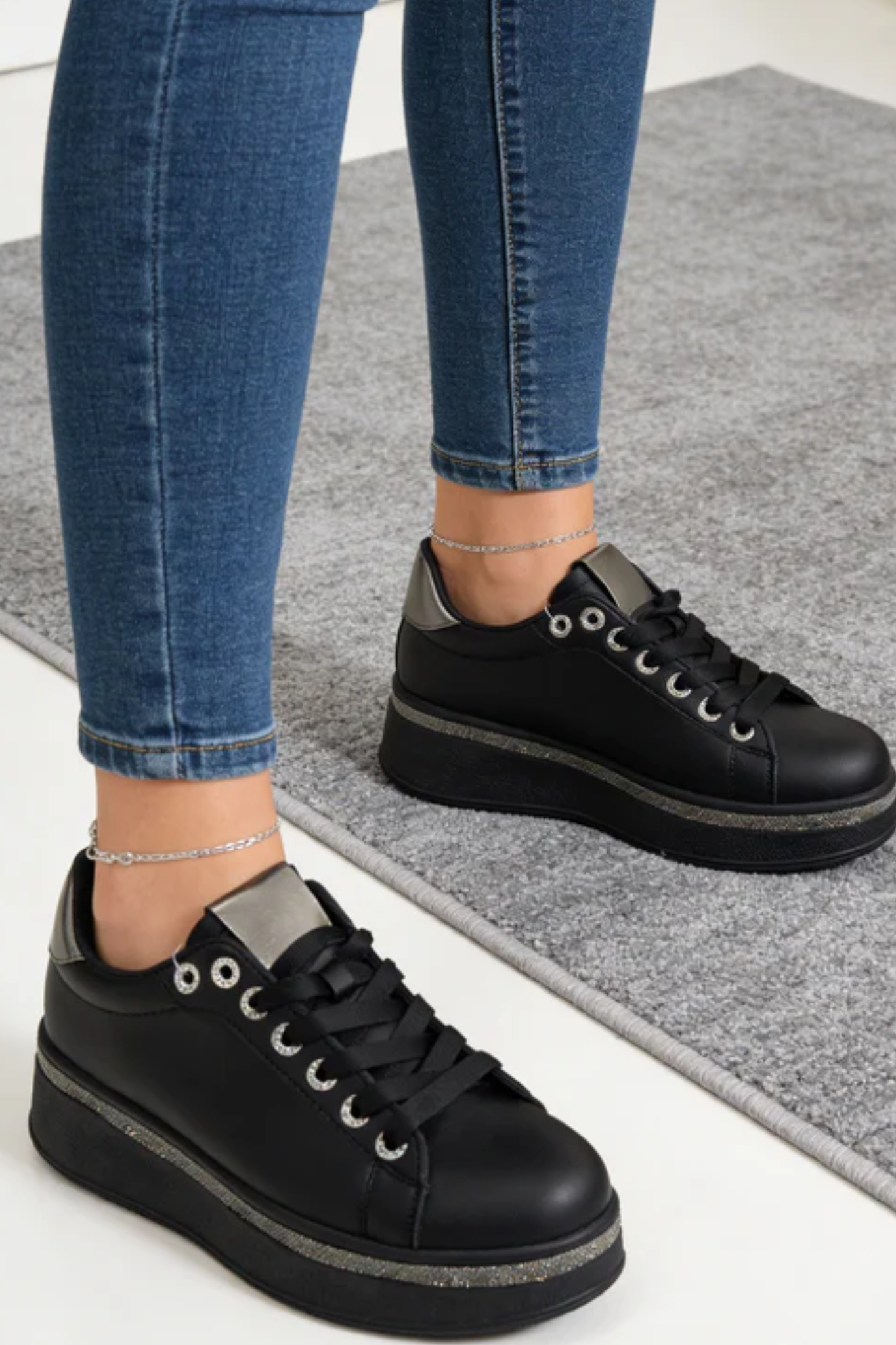 Los tenis HAILEY-81 | BLACK/BLACKdeportivos destacan por su diseño moderno y elegante. La parte trasera está adornada con brillantes, añadiendo un toque de glamour. Son ideales para combinar con atuendos casuales y deportivos, ofreciendo comodidad y estilo en cada paso. ¡Que esperas para que sean tuyos!.