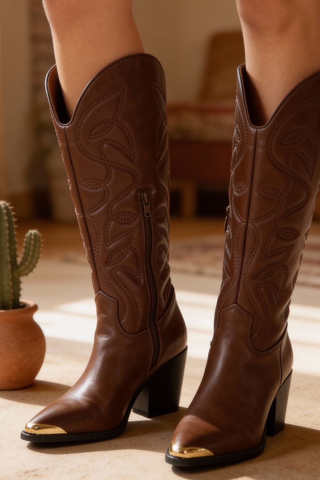 Botas KATE BOOT | BROWN vaqueras de cuero en tono café con tacón característico del estilo cowboy. Diseñadas para combinar autenticidad y comodidad, estas botas ofrecen un perfil clásico que trasciende tendencias.