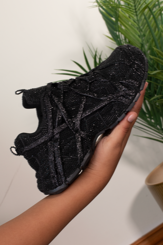 Si amas el negro, los tenis GEORGINA | BLACK son para ti. Con un diseño envolvente, agujetas cruzadas y acabado brillante en tono negro, estos sneakers combinan perfectamente un look urbano, elegante y atrevido. El par ideal para destacar sin necesidad de color.
